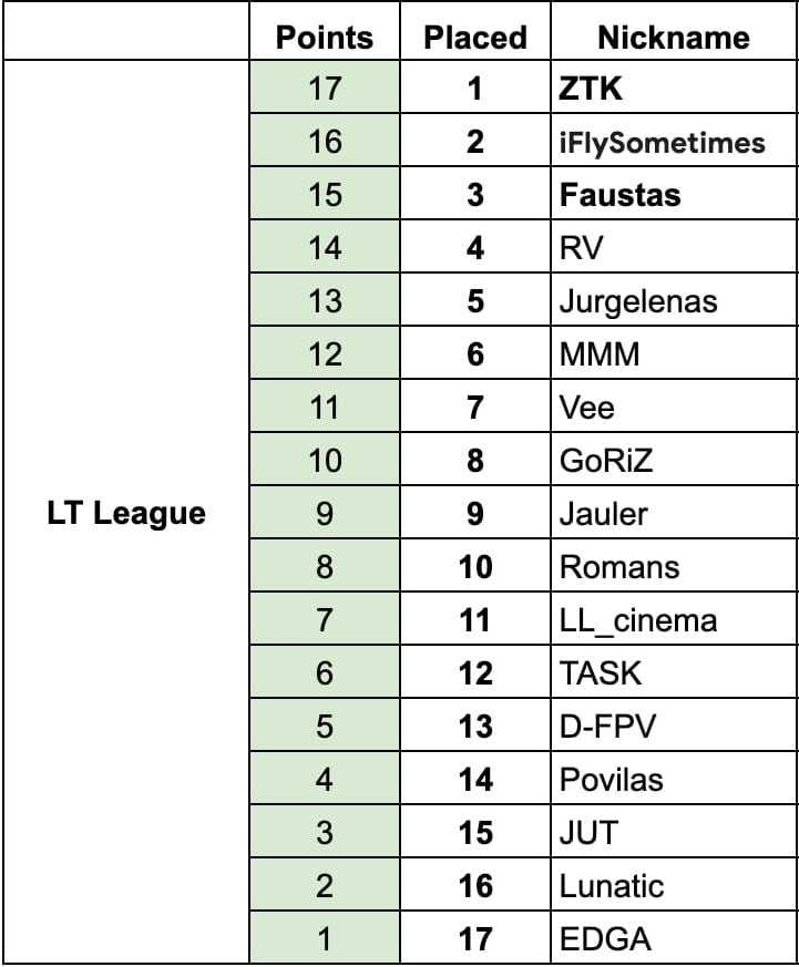 2) Top 3 greičiausi Lietuvos PRO lygos pilotai;